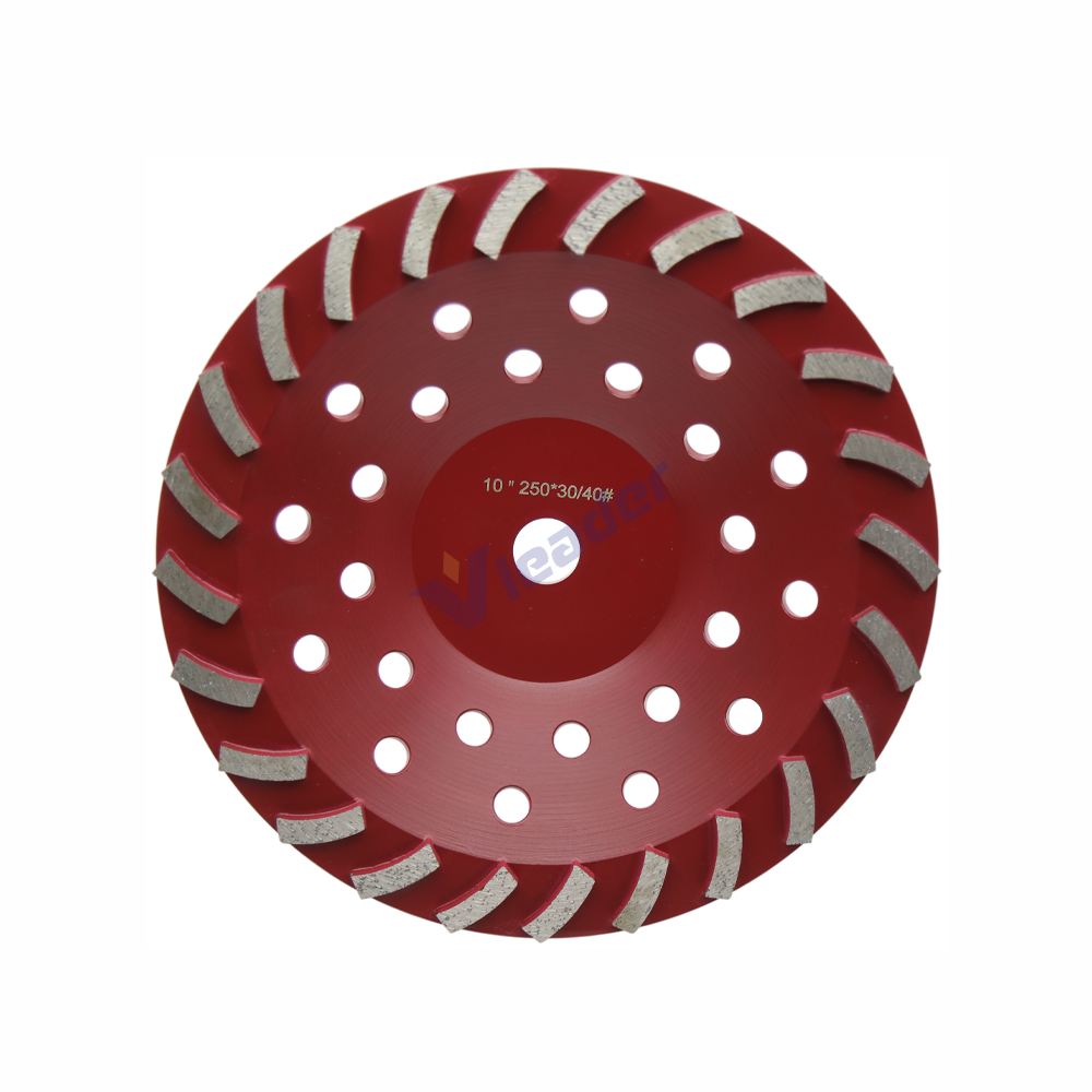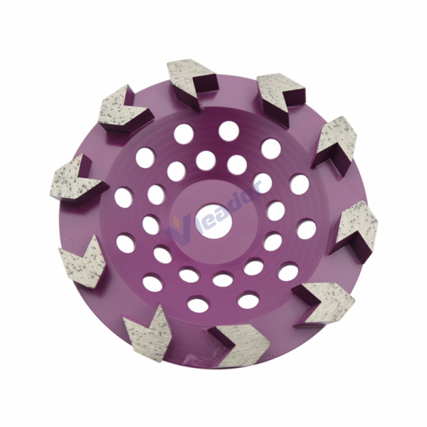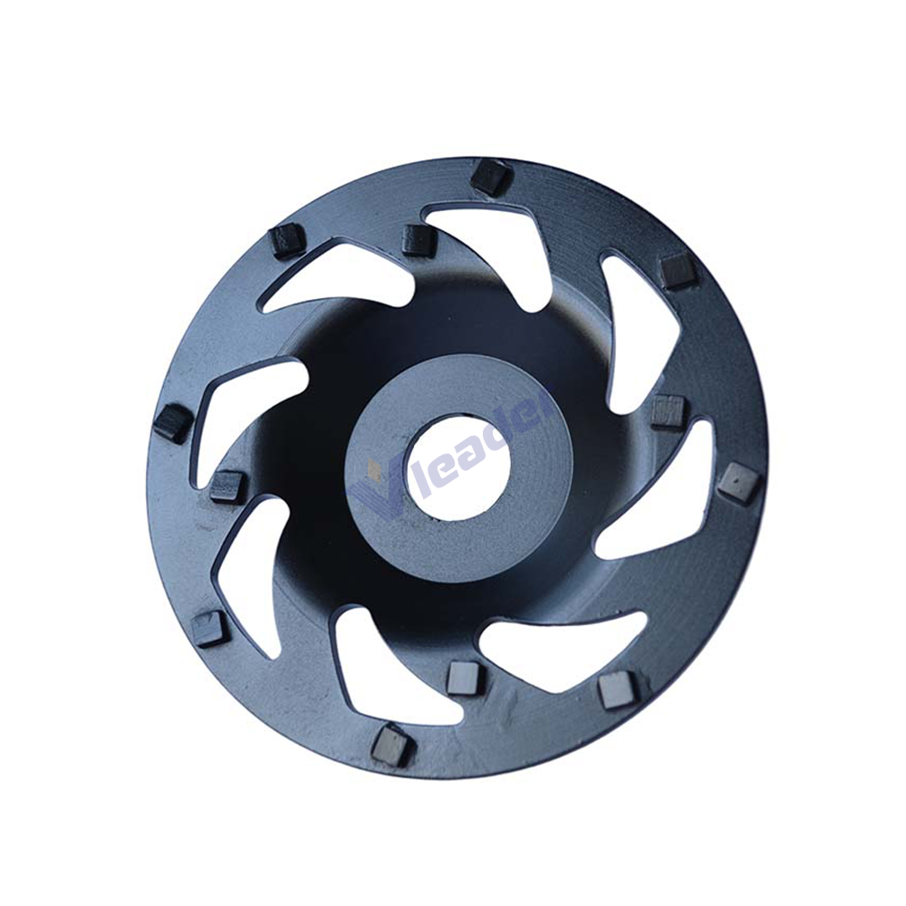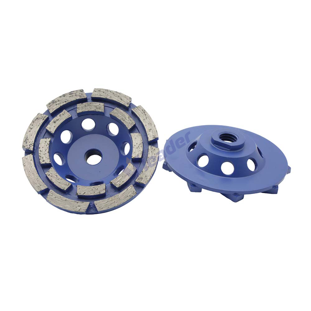 Diamond cup wheels in various designs of single row,double row, turbo, spiral and arrow types for the dry grinding of concrete, stones and hard materials.