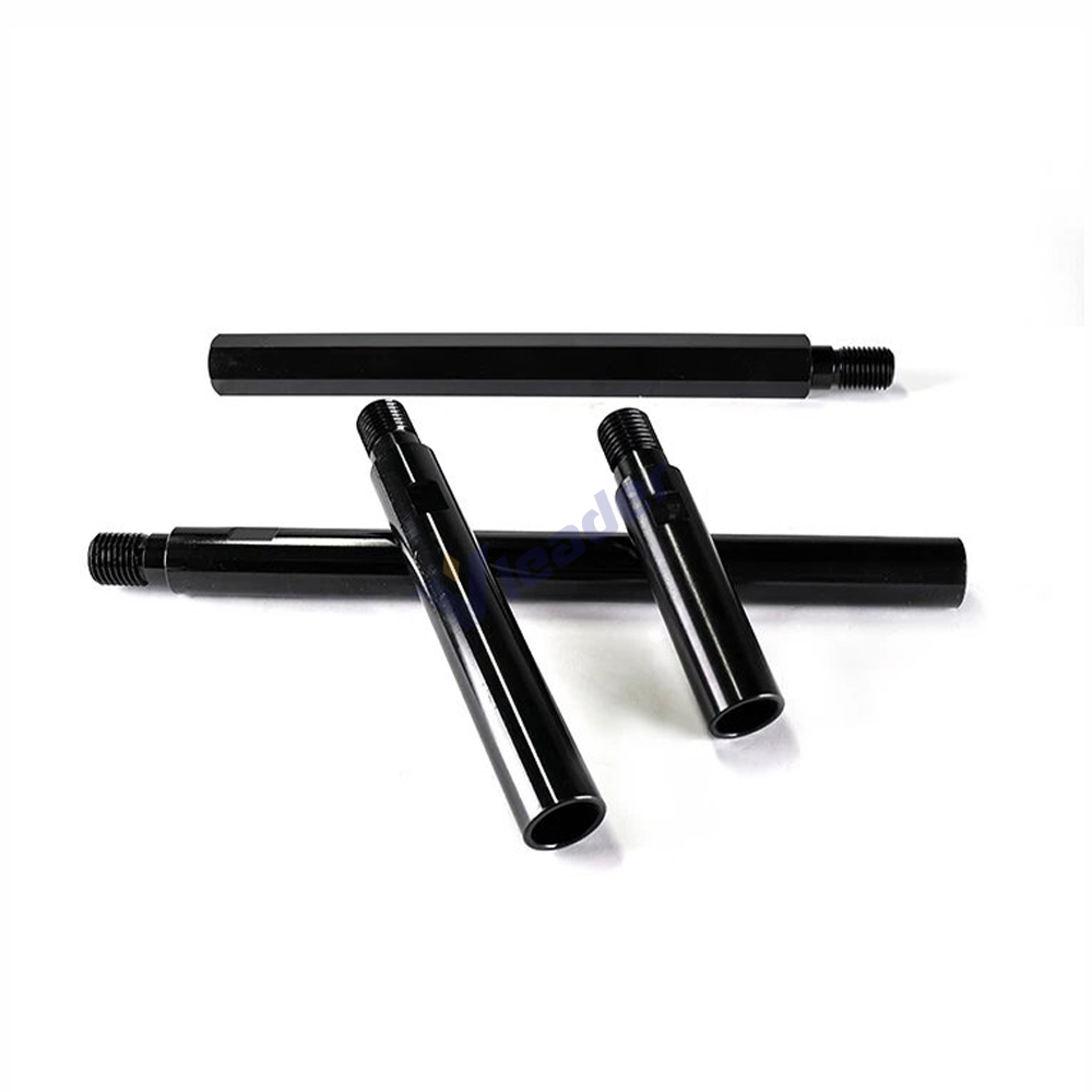 Convenient fast assembling for diamond core drills to drill deeper in concrete or masonry. The two ends of extension are of same thread size, only one is female and the other is male.