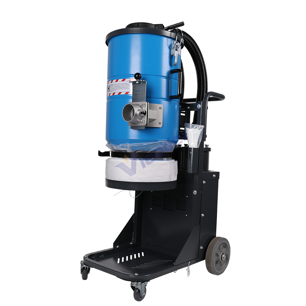 VS-2000 is a two engine HEPA dust extractor .It is equipped with a main filter as the first and two H 13 filter as the final. Each HEPA filter is individually tested and certified to have a minimum efficiency of 99.99% at 0.3 microns. which meets the new silica requirements. This professional dust extractor is excellent for building, grinding, plaster and concrete dust.